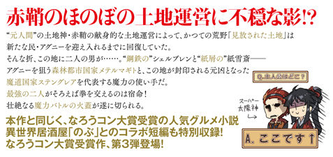 『異世界居酒屋「のぶ」』(著:蝉川夏哉/イラスト:転)とのコラボ短編が掲載されているほか、