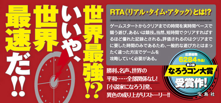 異世界に飛ばされたRTAゲーマー・一条海人。元の世界に戻る方法が見つからず落胆するカイトは、半ばヤケクス気味に、この世界のすべてを「できるだけ早く」攻略してやろうと決心する。強い敵は避ける、出会った敵からは逃げる、回復アイテムはケチらない……。RTA知識を駆使し、「世界最強」ではなく「世界最速」を目指せ!